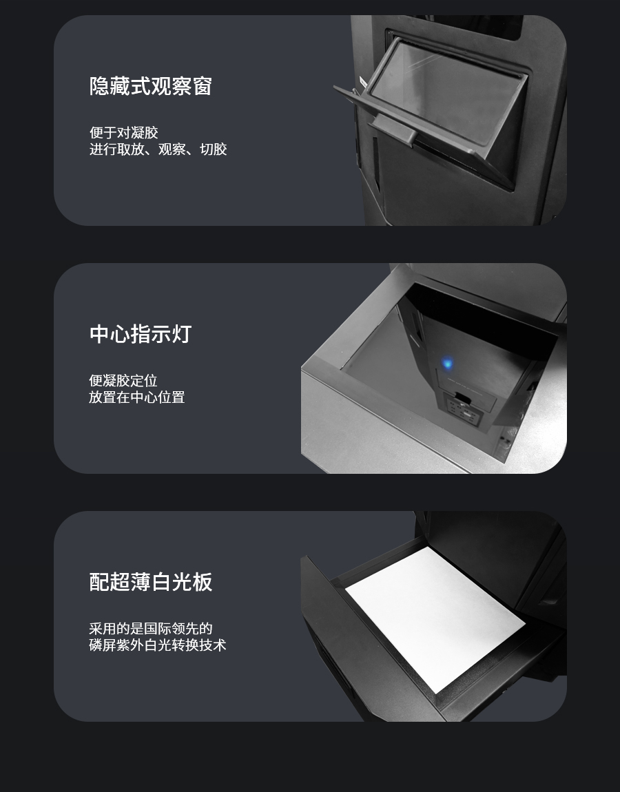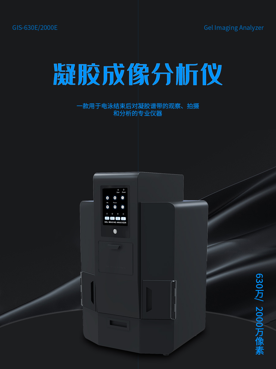 • Product description: GIS-630E Gel Imaging Analyzer is a professional instrument for observing, photographing and analyzing gel bands after electrophoresis. Using a Sony Exmor CMOS camera, the weak electrophoretic bands that are difficult to be identified by the naked eye can be captured. A special filter set is used to effectively filter out background interference noise, and at the same time, the pollution of ethidiu