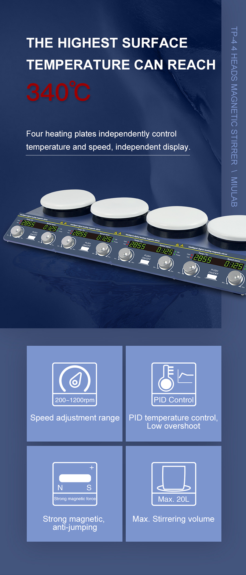 TP-4 4 heads magnetic stirrer