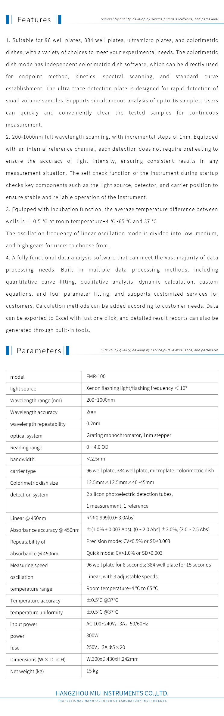 FMR-100 full wavelength enzyme-linked immunosorbent assay (ELISA) reader